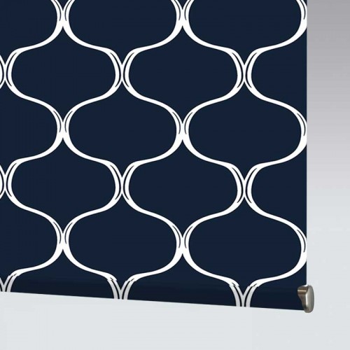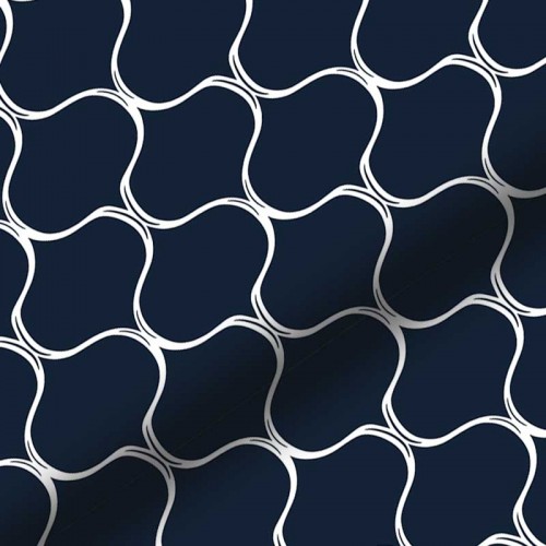 Lima Demi Dark Ocean is an exceptional quality fabric. Linen base cloth with a white geometric pattern.